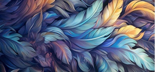 تصميم ريش خيالي بألوان سوريالية وتدرجات ذهبية وفضية، يحلق بخيالك إلى عوالم سحرية.